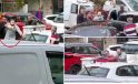 Biri araçtan sopayla indi, diğeri tabancayı çıkardı! Trafik terörü kamerada