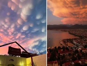 Fethiye’de sağanağın ardından gökyüzünde "Mammatus Bulutları" görüldü