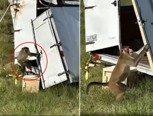 Kamyon devrildi, kaçan deney maymunları ülkeyi alarma geçirdi