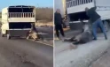 Kamyonetin arkasına bağladığı atı dakikalarca sürükledi