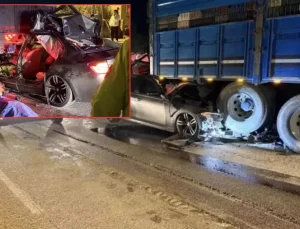 Lüks otomobil kamyona ok gibi saplandı! Bilanço ağır