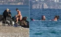 Görüntü Türkiye’den! Herkes üşürken onlar yüzdü