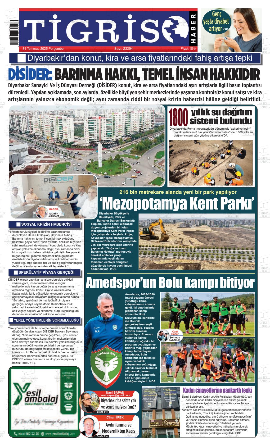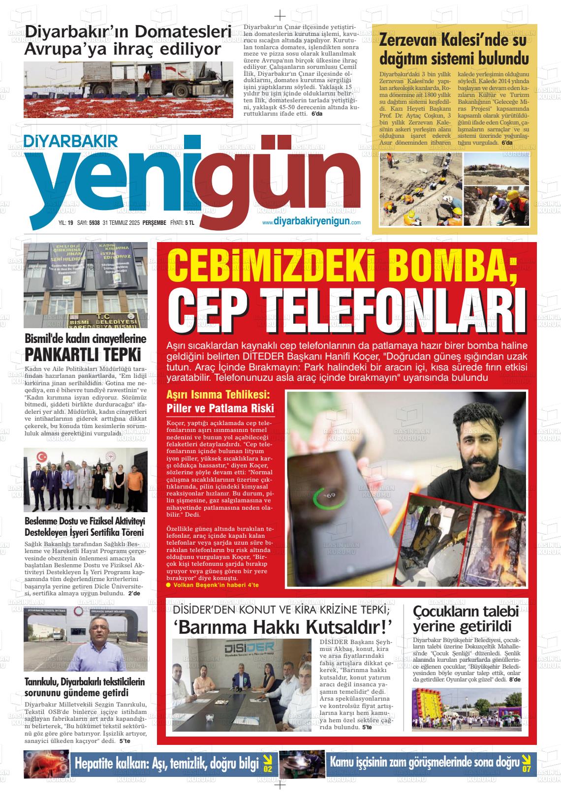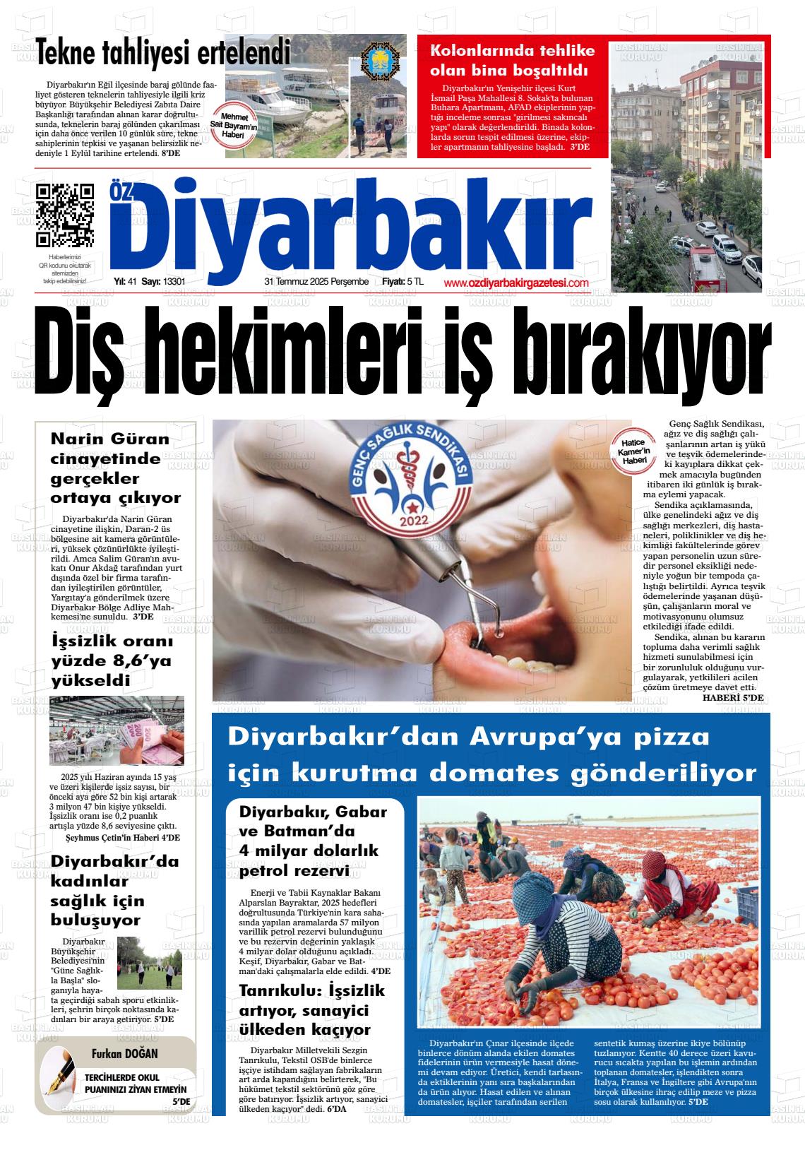 Dİyarbakır Yerel Gazeteleri 22 Kasım 2025, Cumartesi Günü Manşeti