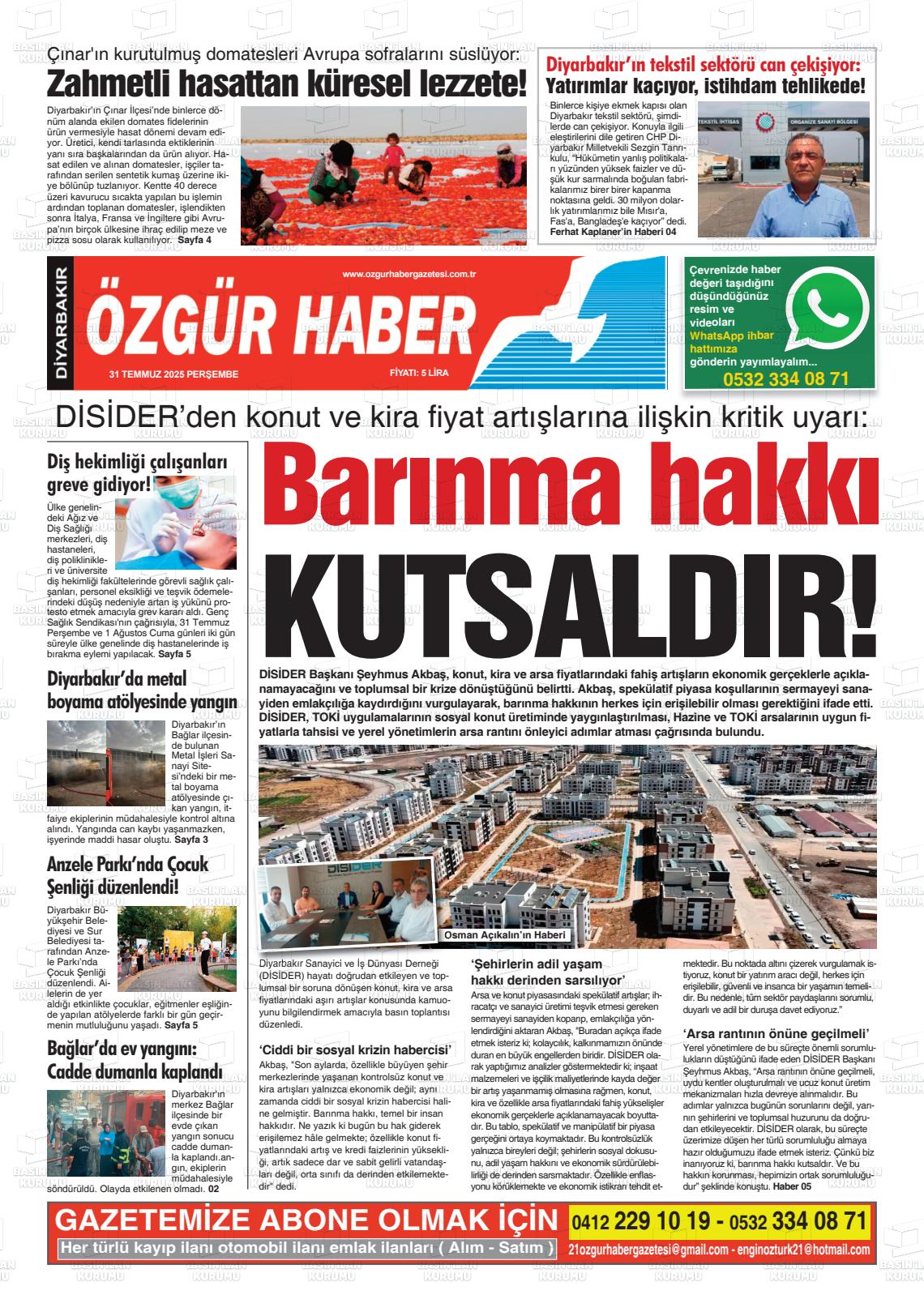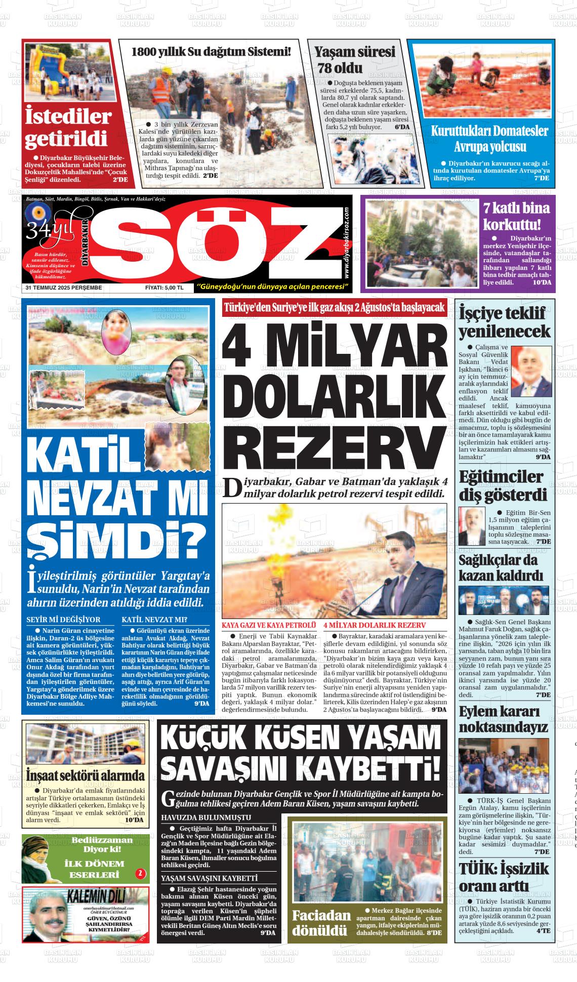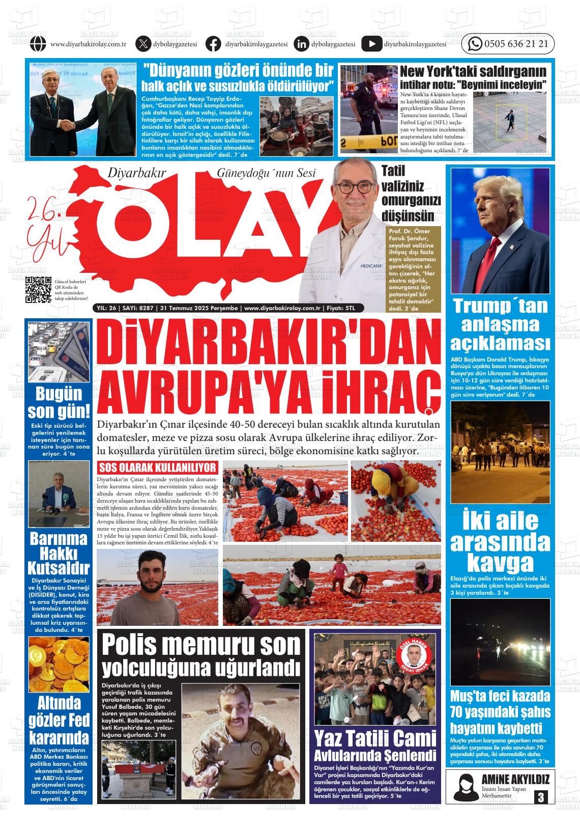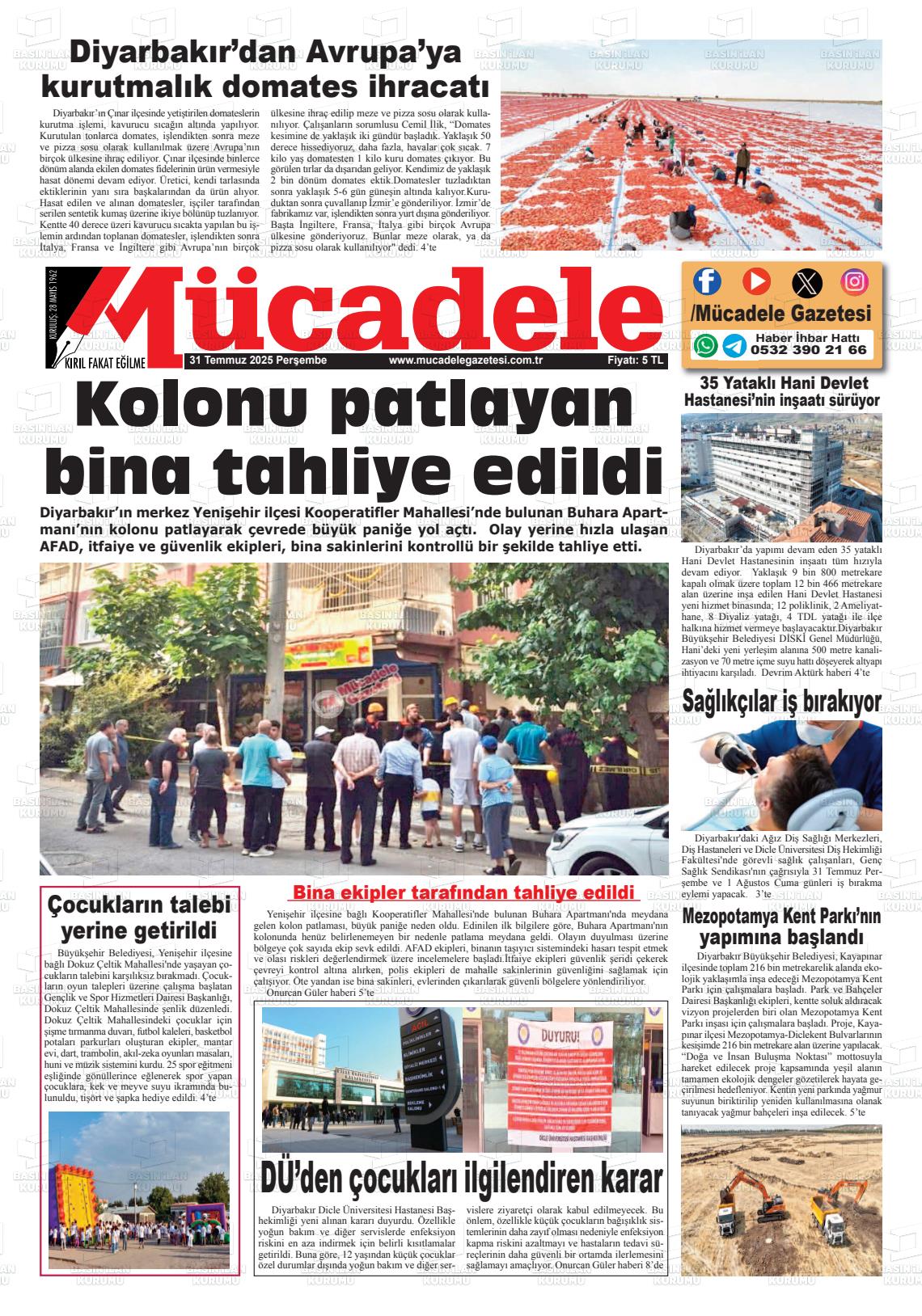 Dİyarbakır Yerel Gazeteleri 22 Kasım 2025, Cumartesi Günü Manşeti