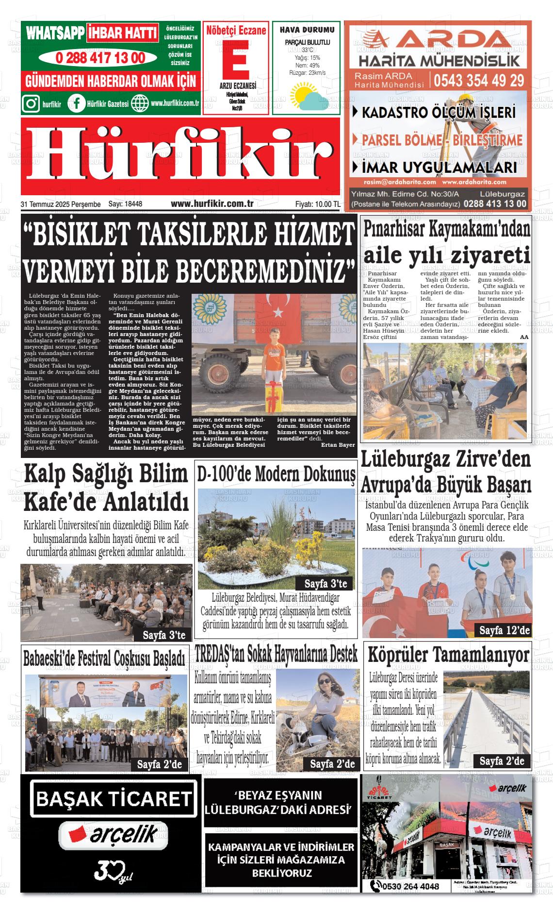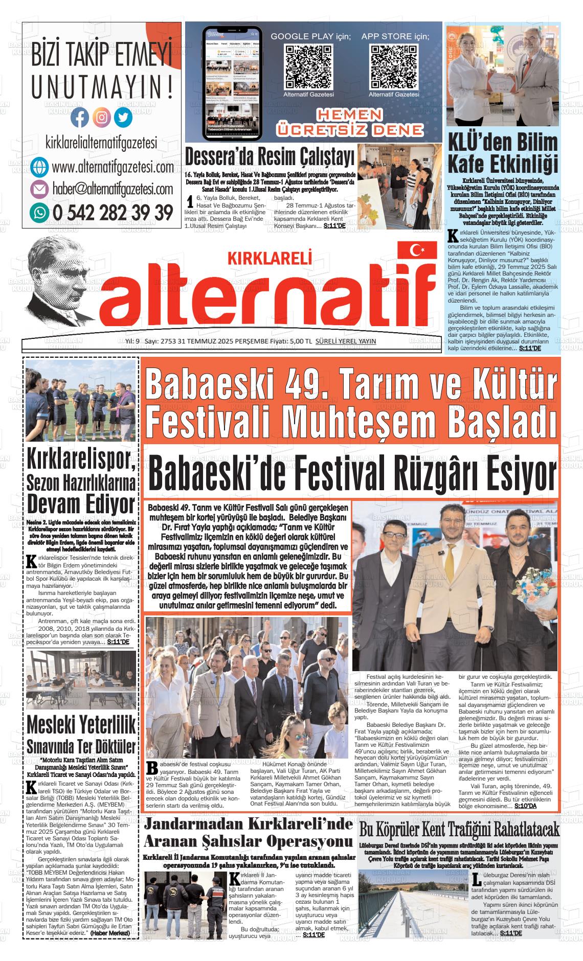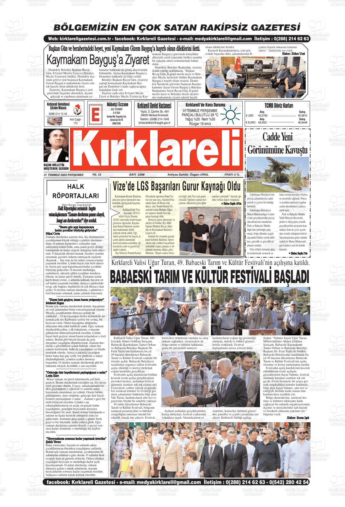 Kırklarelİ Yerel Gazeteleri 09 Ocak 2026, Cuma Günü Manşeti
