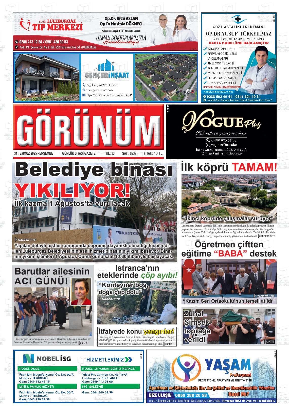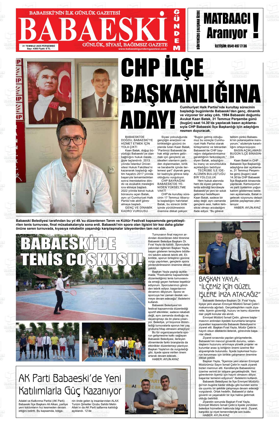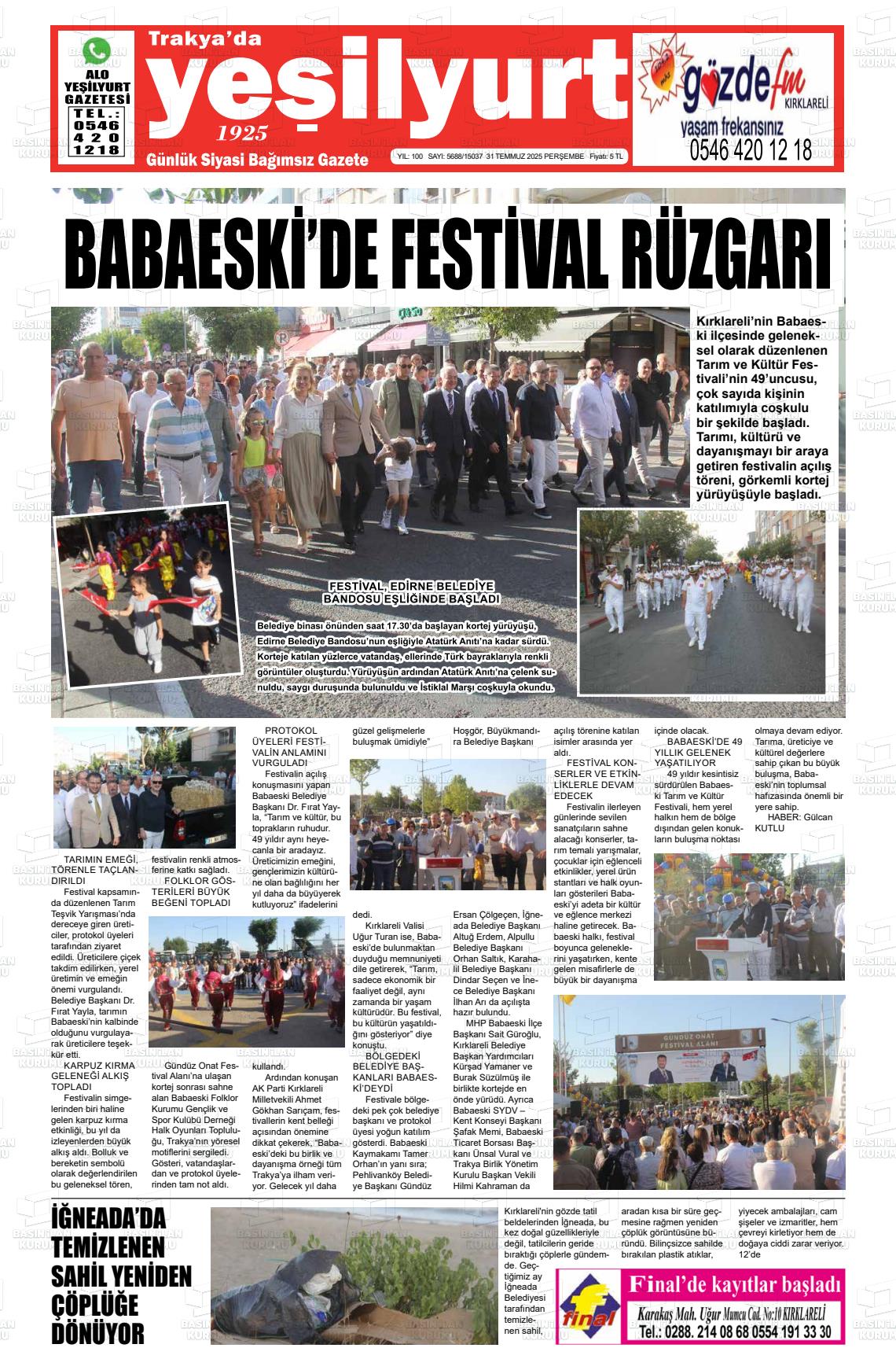 Kırklarelİ Yerel Gazeteleri 09 Ocak 2026, Cuma Günü Manşeti