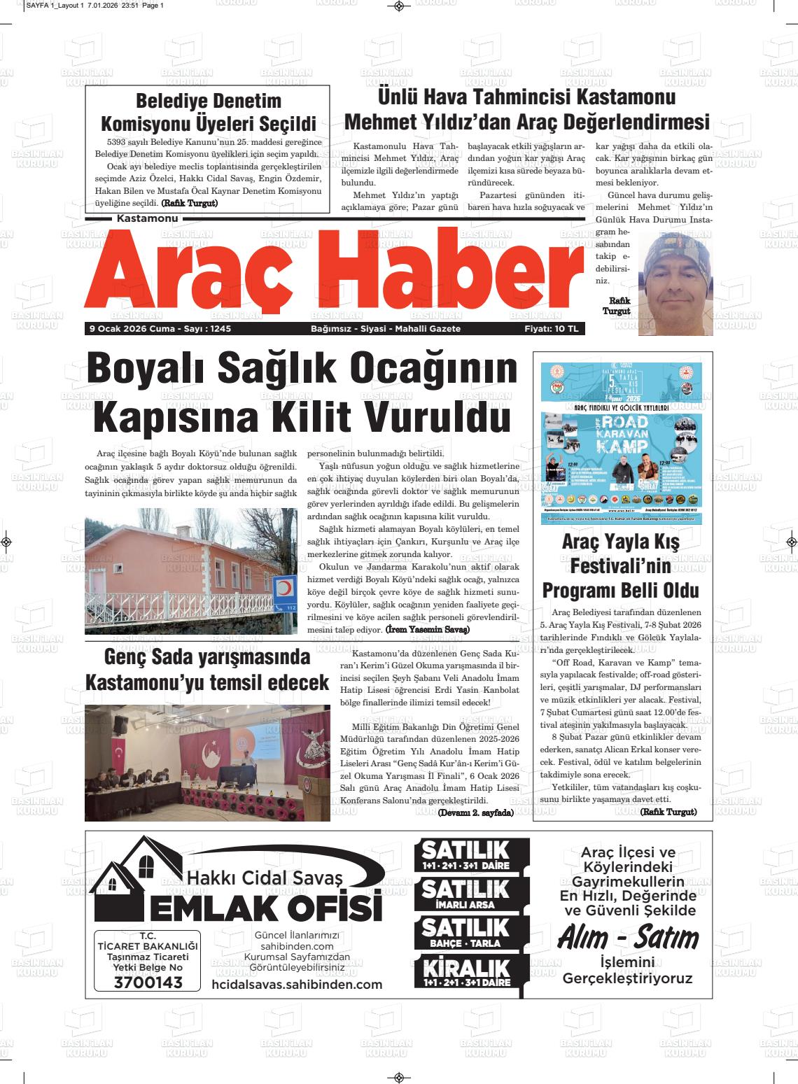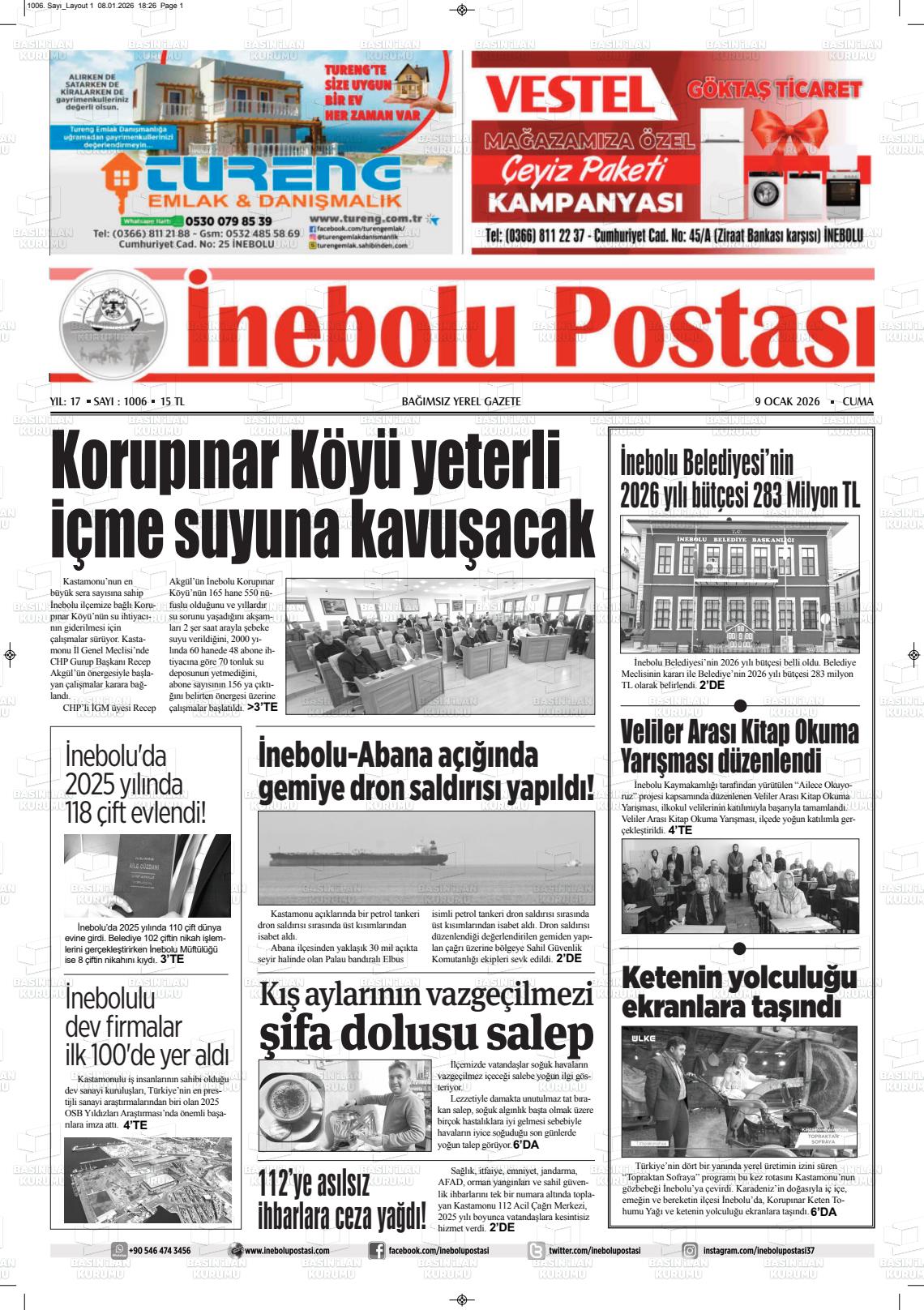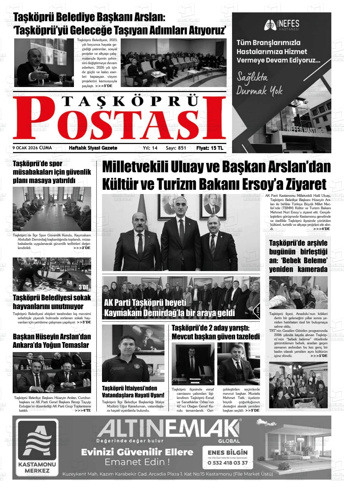 Kastamonu Yerel Gazeteleri 09 Ocak 2026, Cuma Günü Manşeti