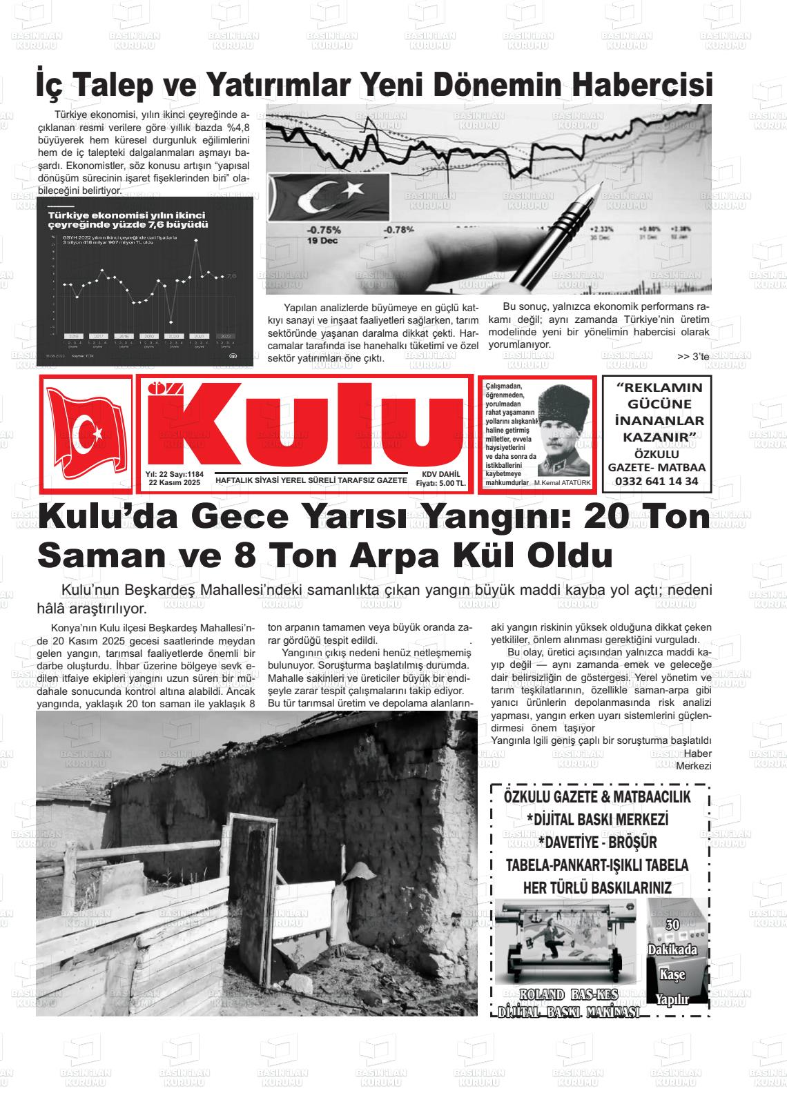 Konya Yerel Gazeteleri 22 Kasım 2025, Cumartesi Günü Manşeti