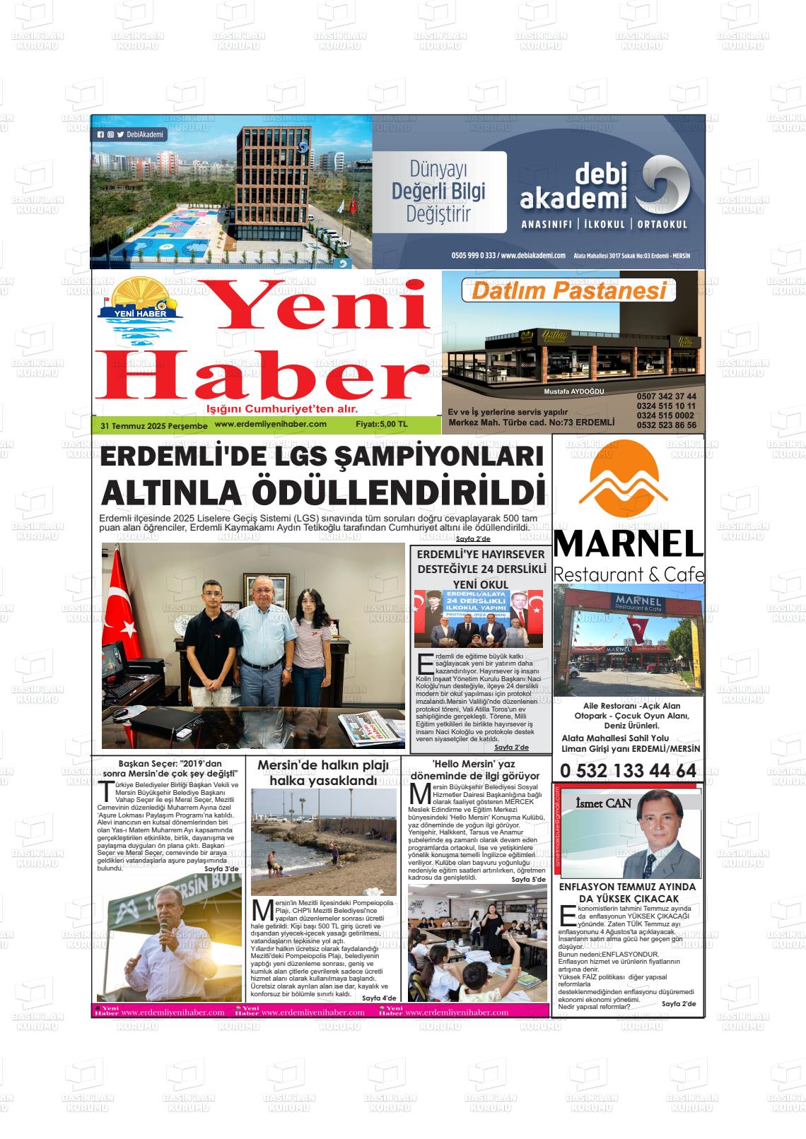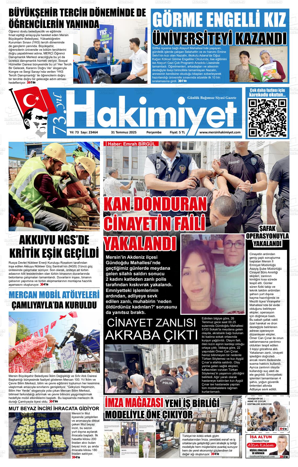 Mersİn Yerel Gazeteleri 22 Kasım 2025, Cumartesi Günü Manşeti