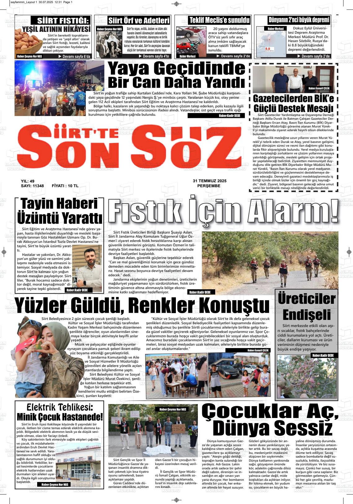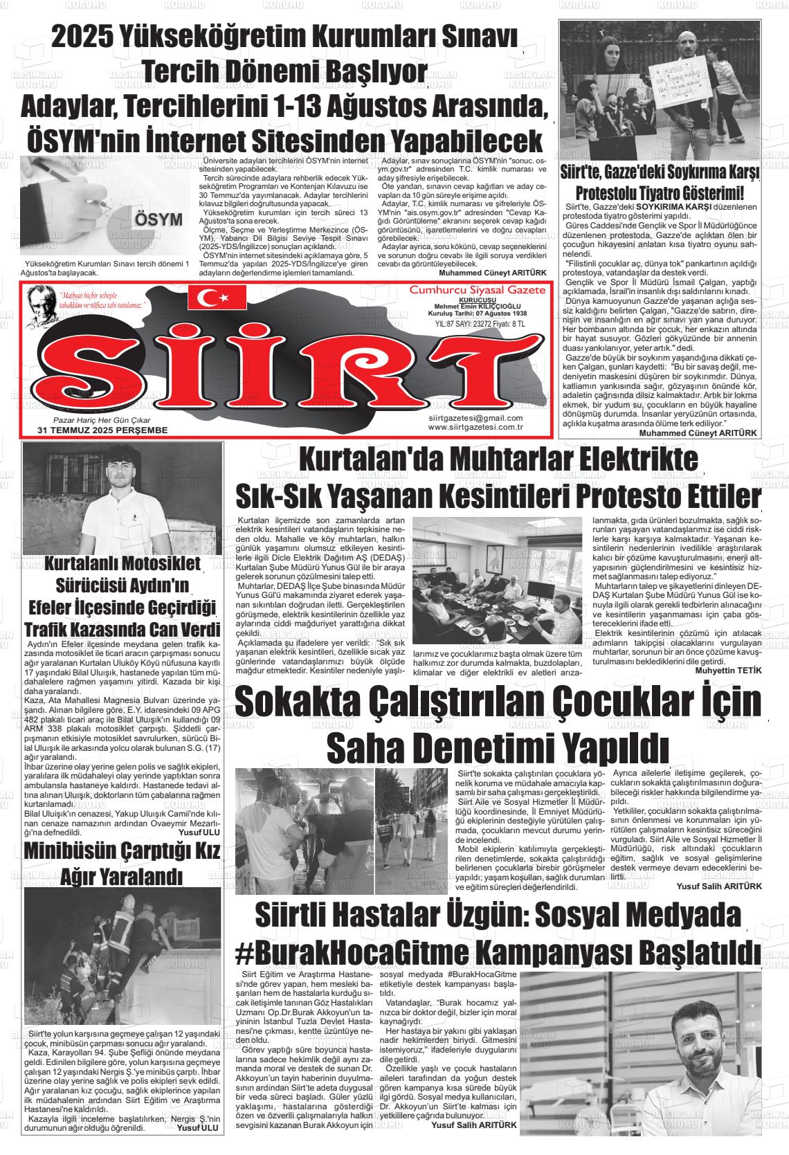 Sİİrt Yerel Gazeteleri 09 Ocak 2026, Cuma Günü Manşeti